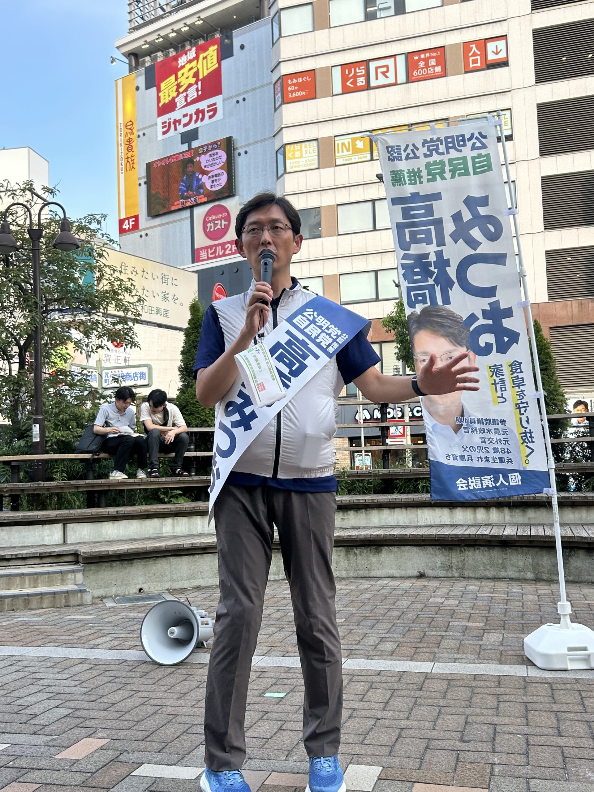 選挙戦最初の日曜日。備蓄前放出の盾役者・高橋みつお候補は、各地で渾身の街頭演説を展開中!