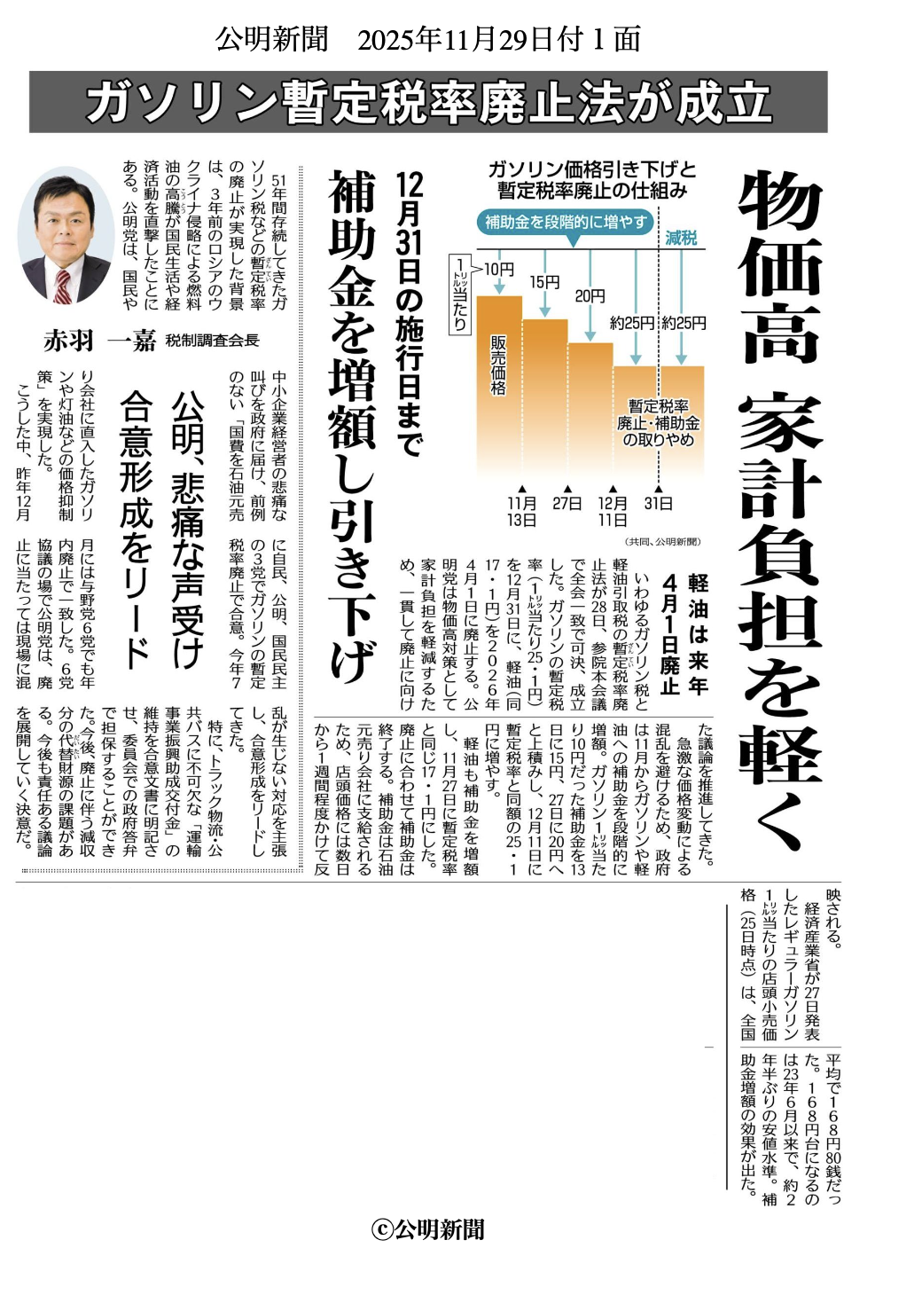 公明党は物価高対策として、