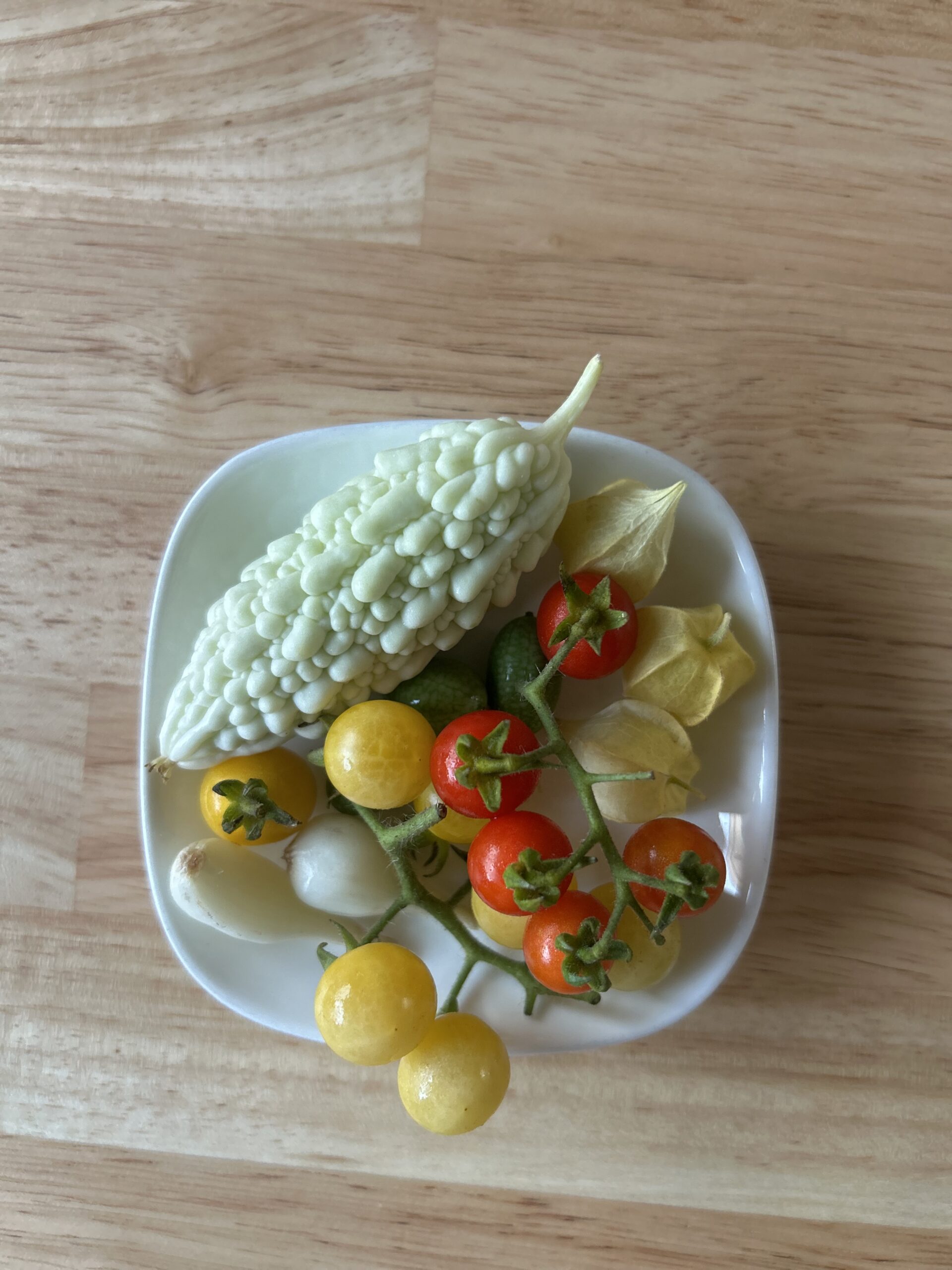 昨日届いた13種類の野菜の中から、ちょっとだけご紹介! 白いゴーヤに元気いっぱいのミニトマト、エシャレット、マイクロキュウリ、そして食用ほおずきまで…。 鈴木さんの野菜セット、いつも届くのが楽しみです! 今回も美味しいびっくりをありがとうございます!